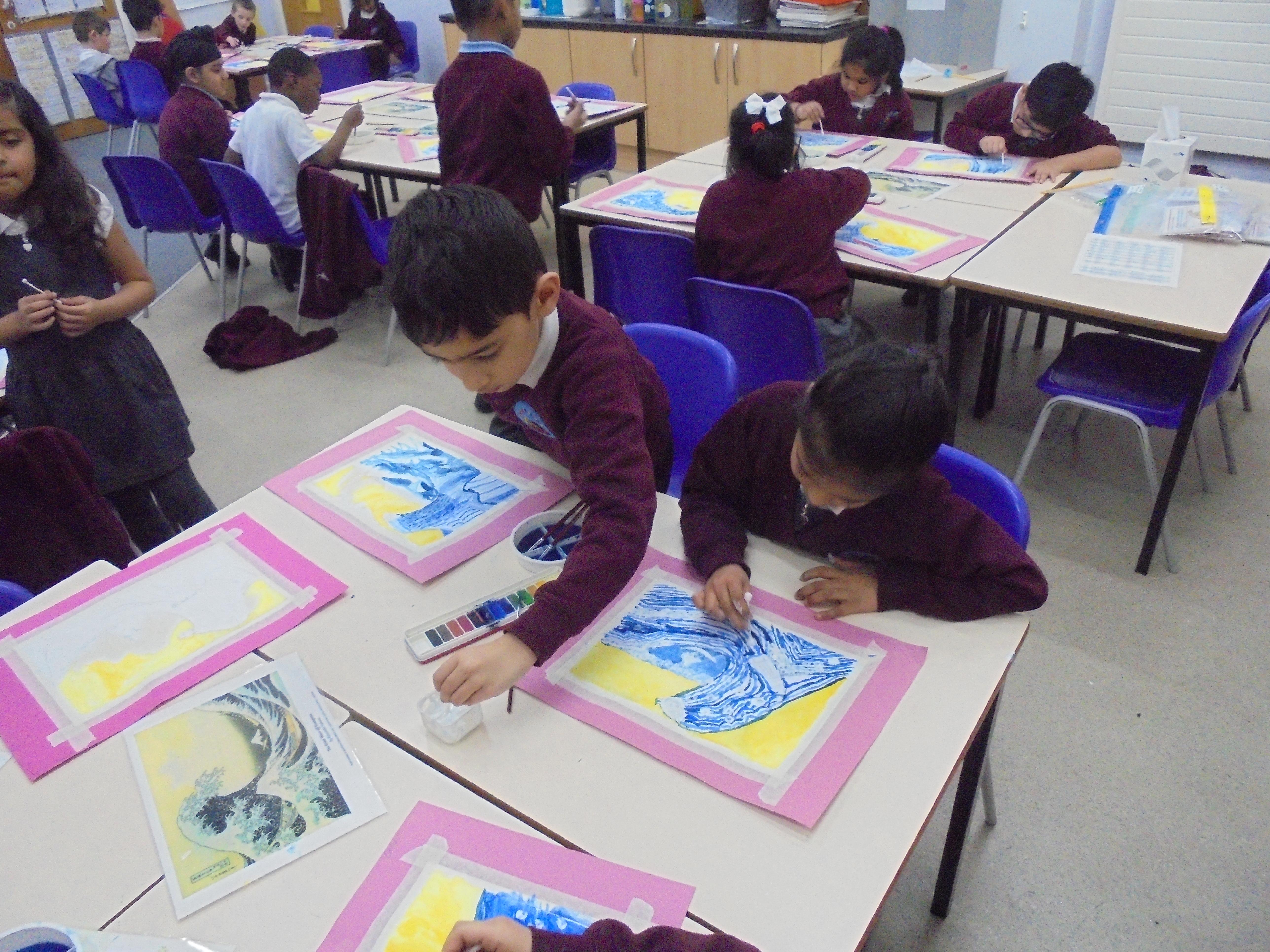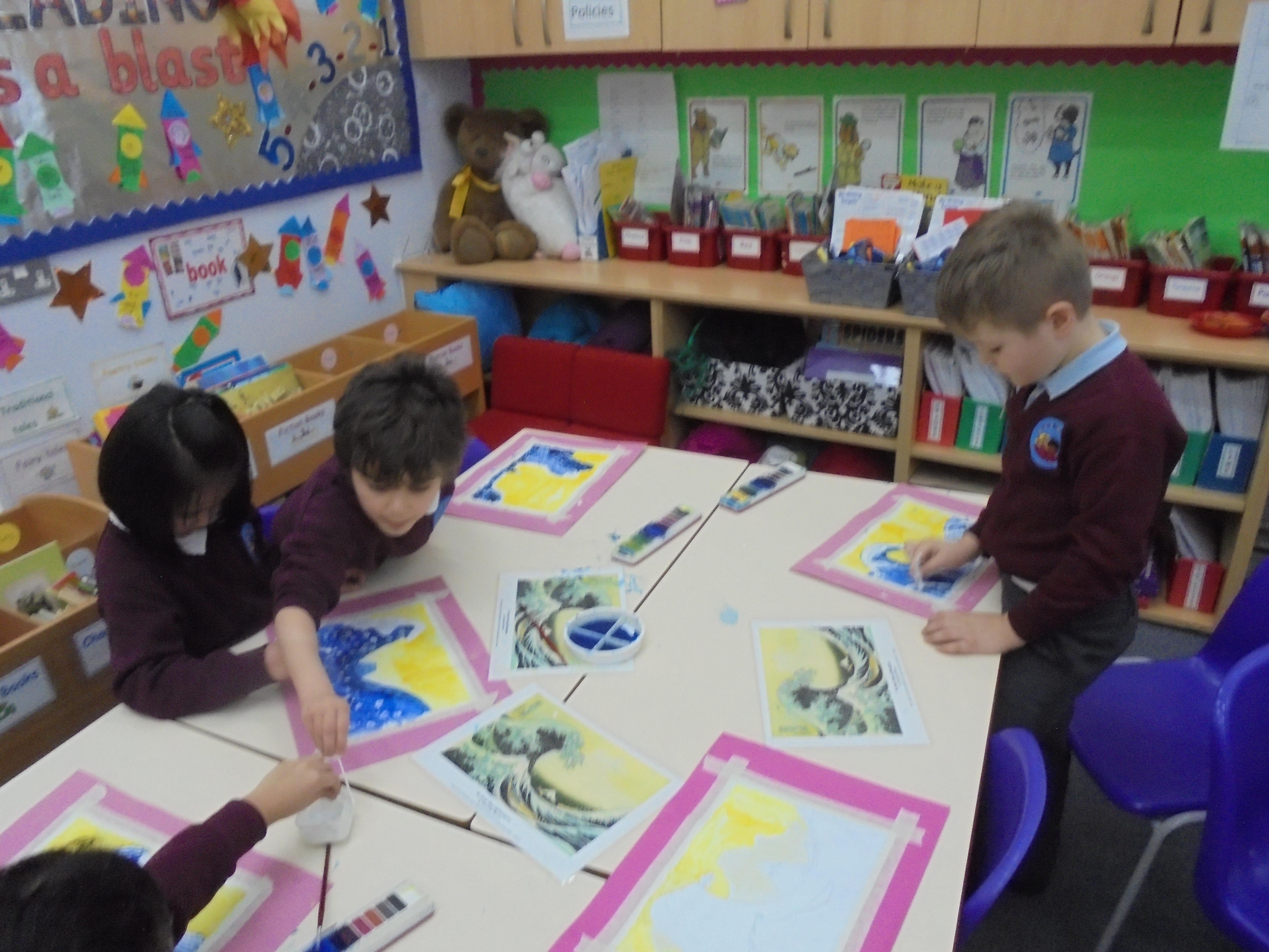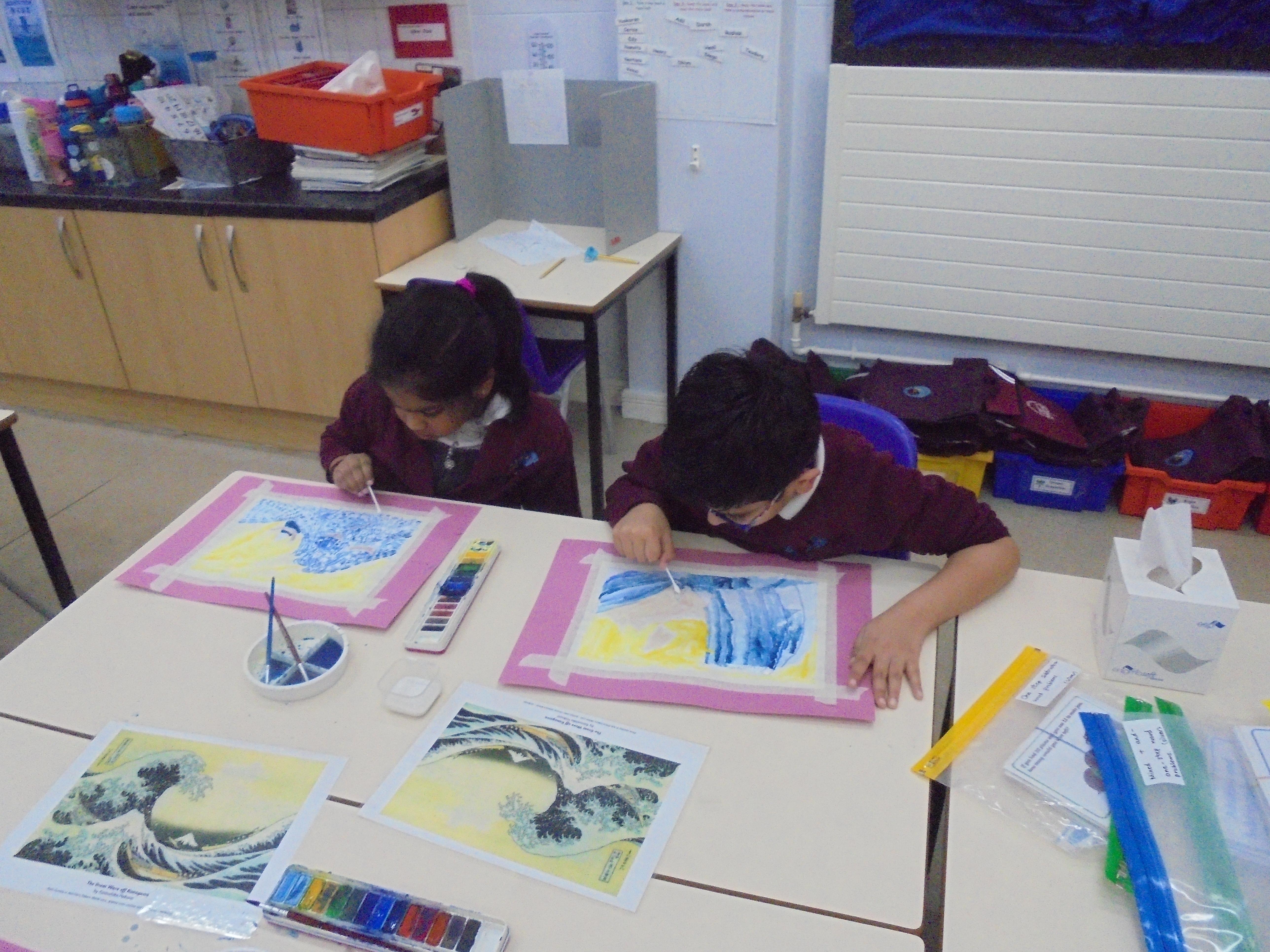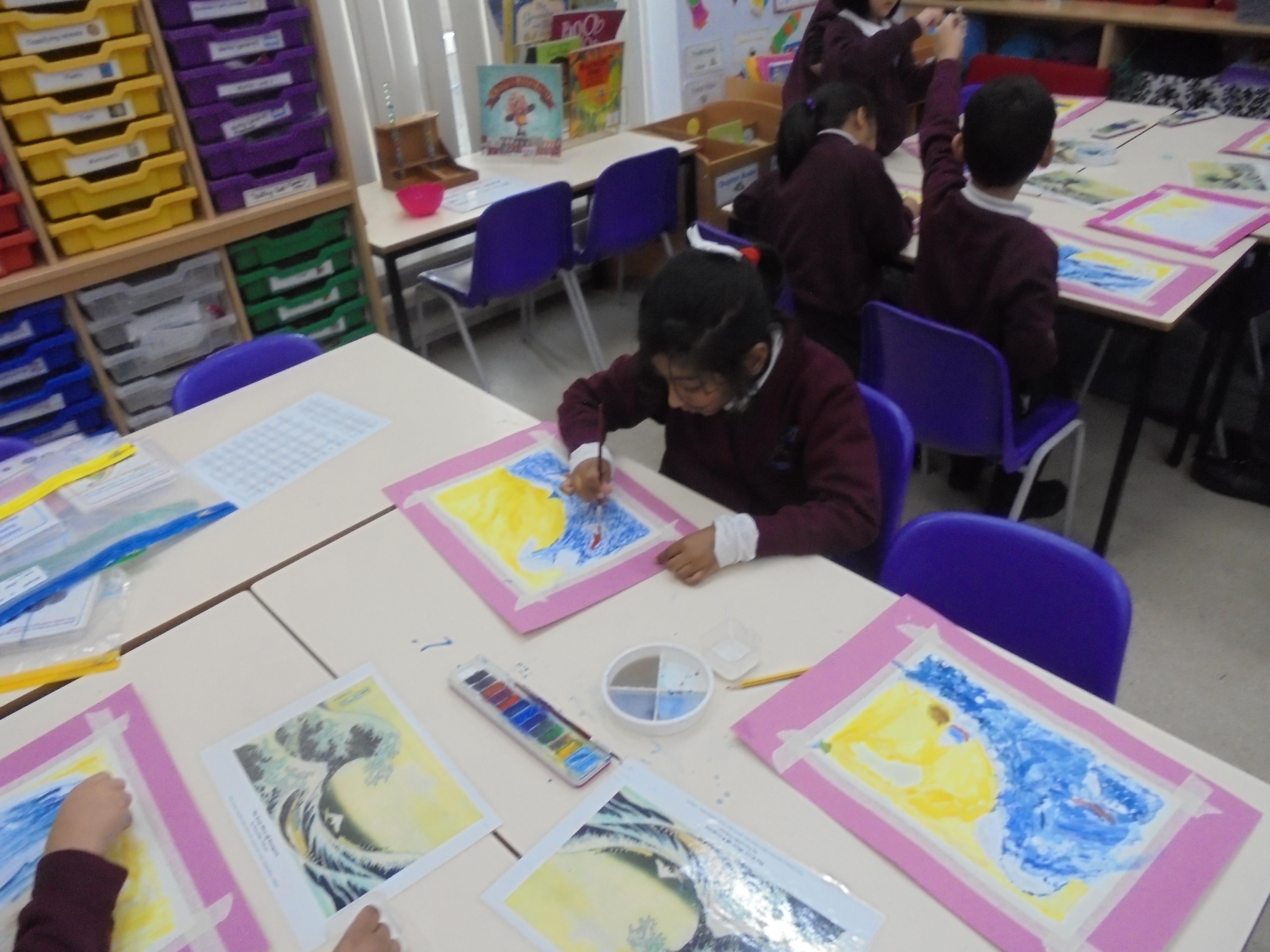 We will also be looking at the artist Hokusai in detail and his painting 'The Great Wave' which inspired the cover of Kensuke's Kingdom. We will recreate the great wave in art by using watercolours, printing and in mosaic form.