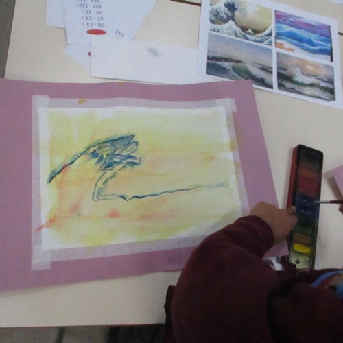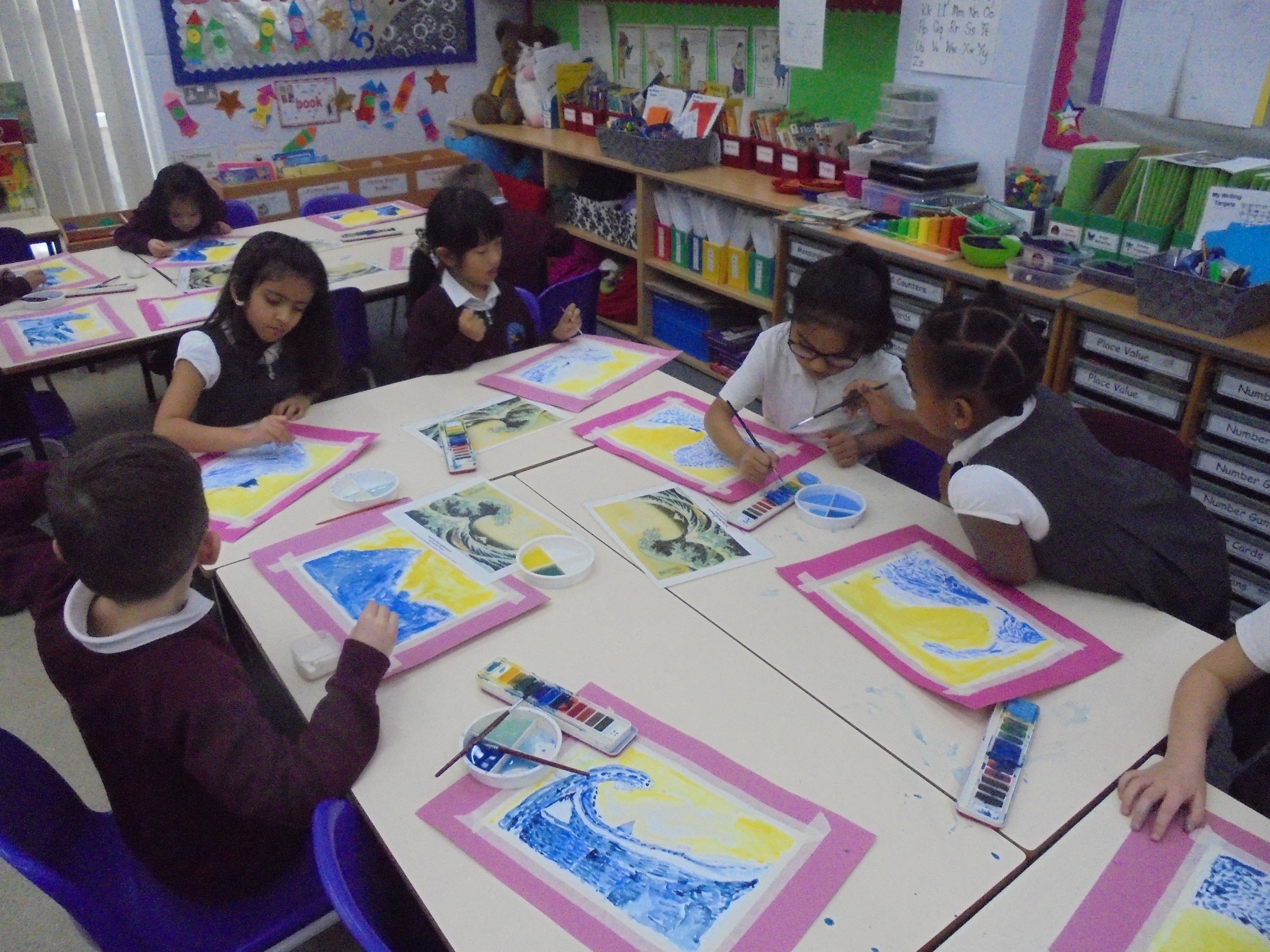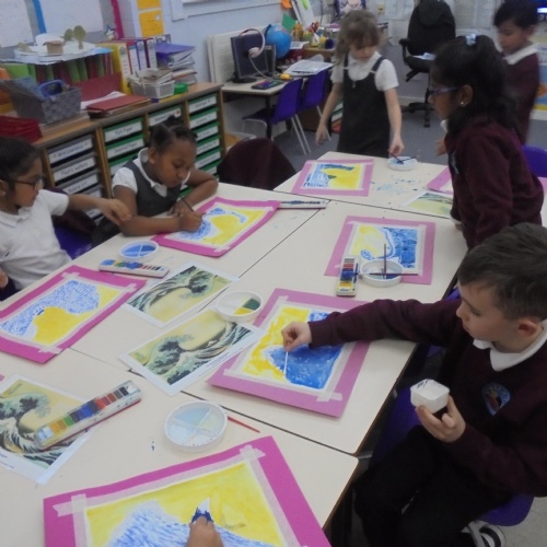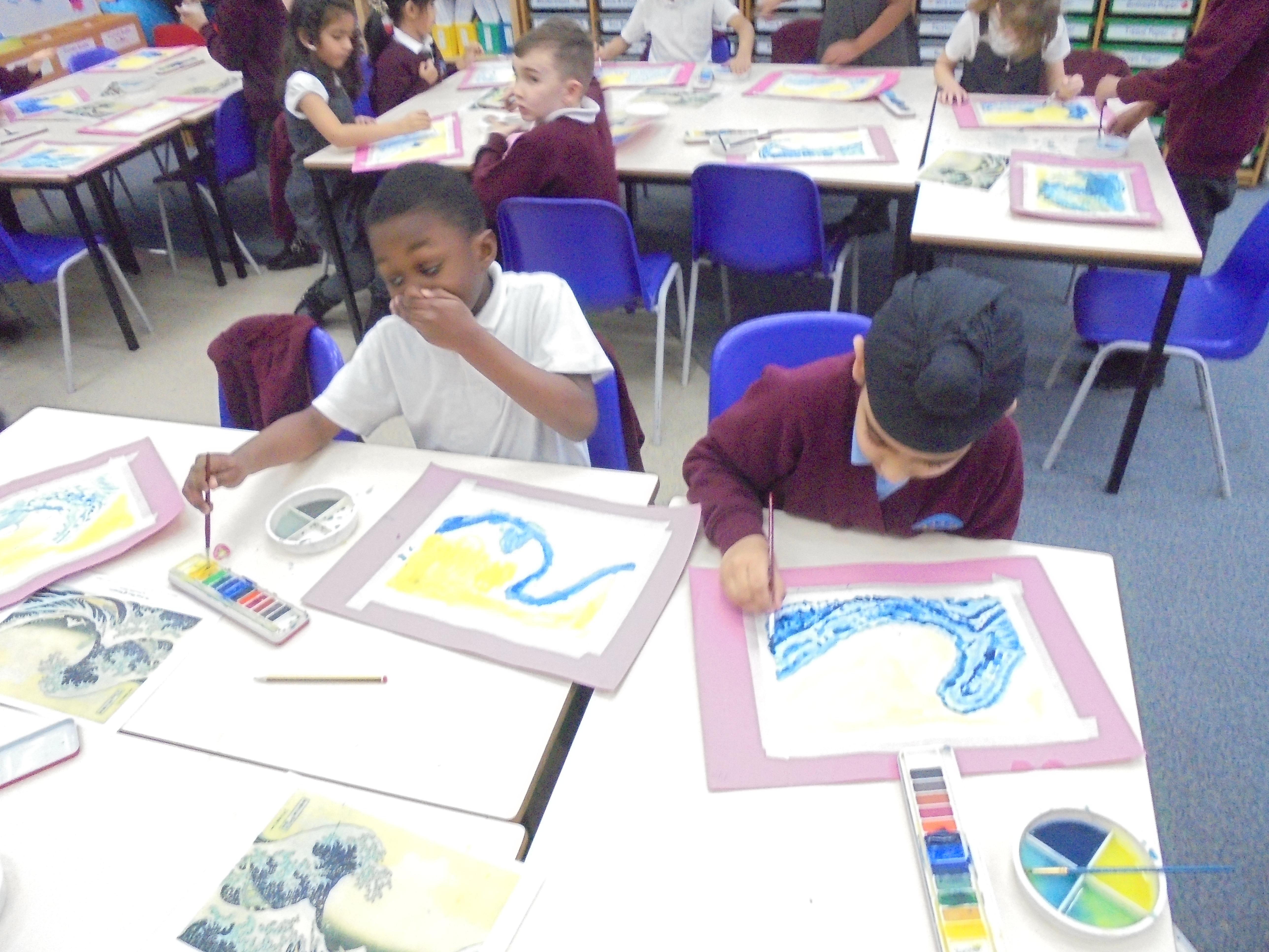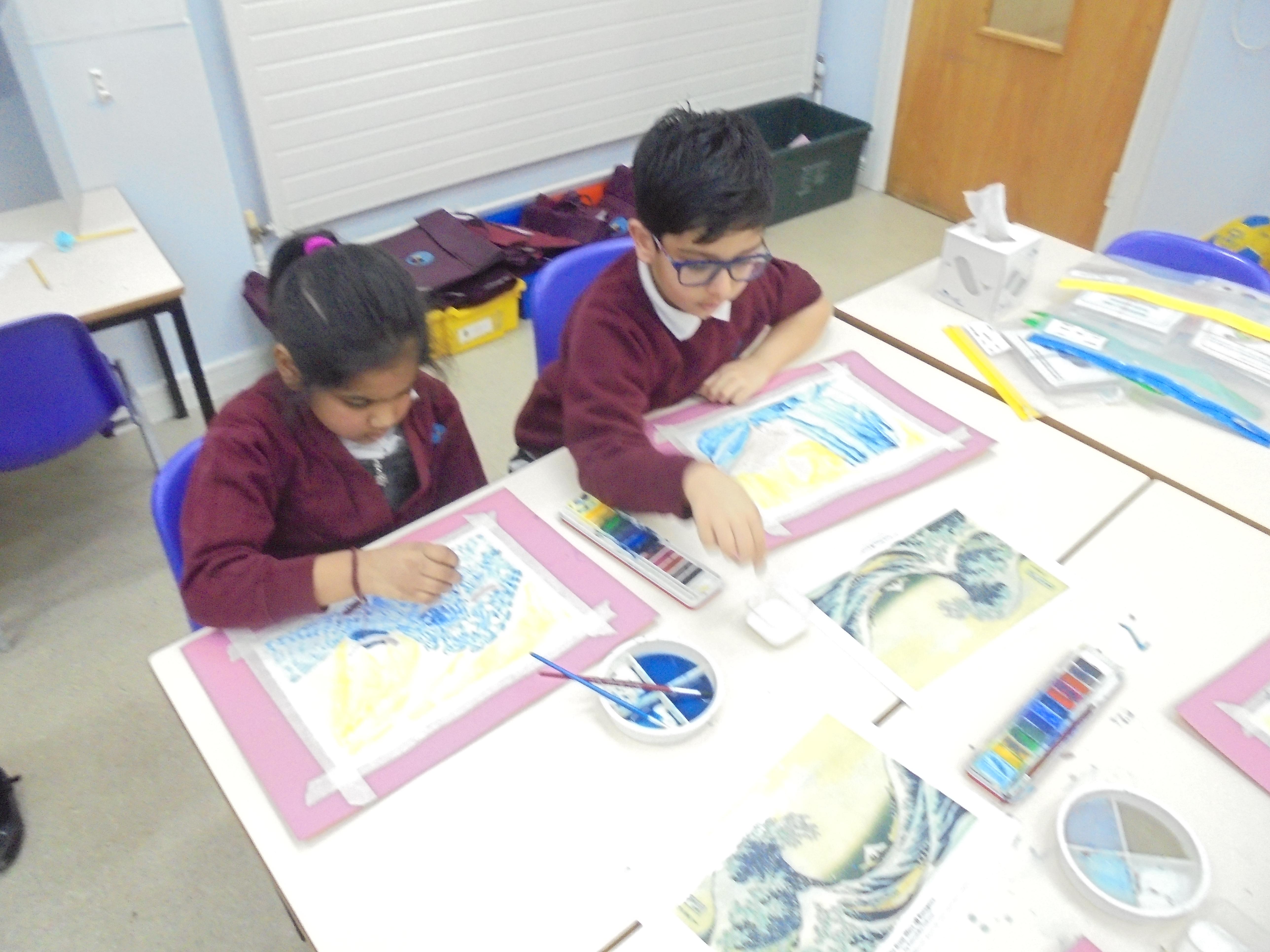 We will also be looking at the artist Hokusai in detail and his painting 'The Great Wave' which inspired the cover of Kensuke's Kingdom. We will recreate the great wave in art by using watercolours, printing and in mosaic form.