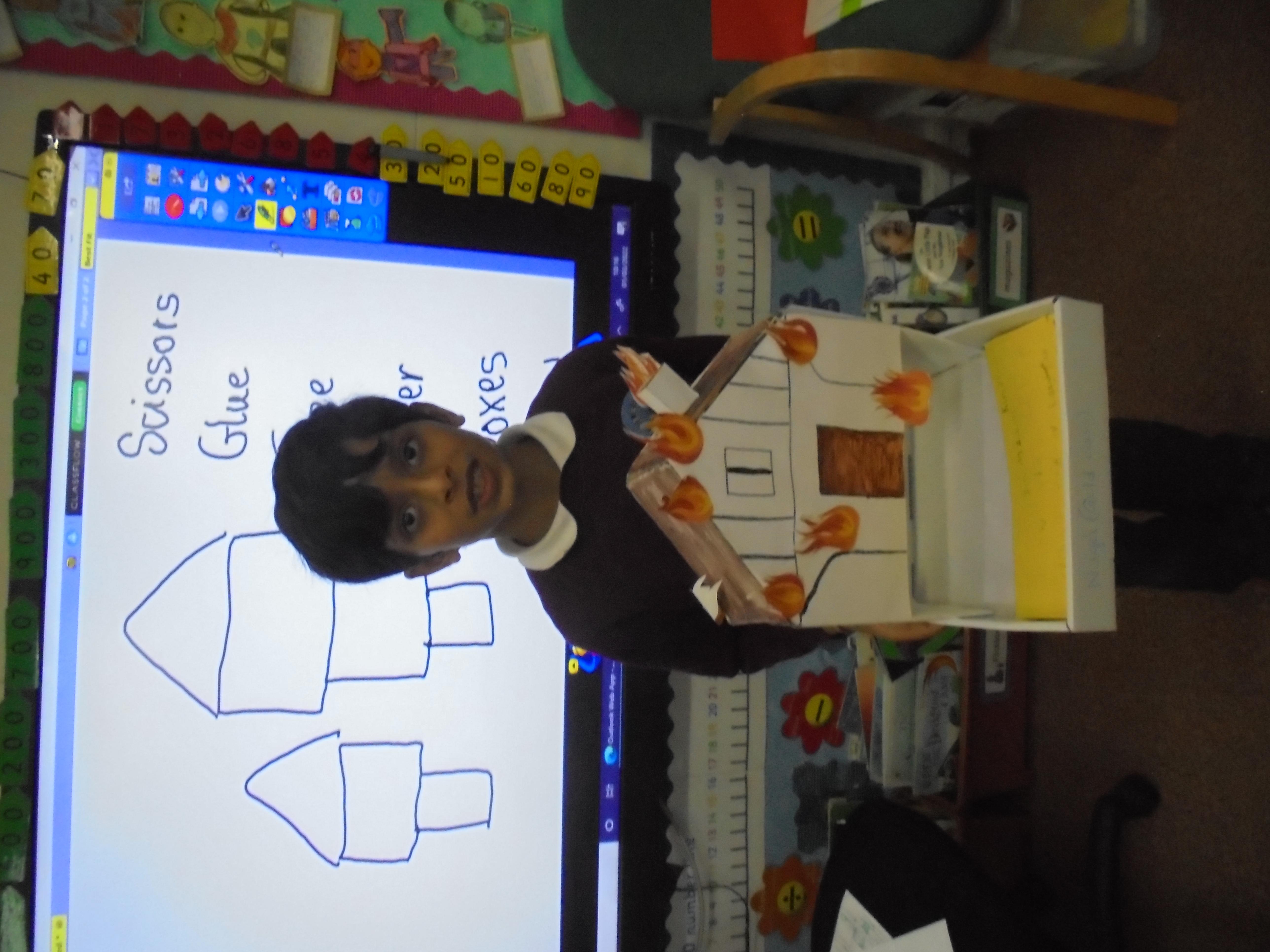Making Tudor Houses: In Design and Technology, we used cardboards, paper, scissors, glue and straw to design Tudor houses. We did our research on what the houses looked like in 1666 and what materials they were built from, beforehand.