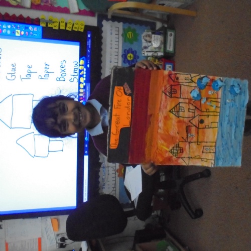 The Great Fire of London Topic Projects: Our topic this half term is The Great Fire of London. In preparation for our topic we researched about The Great Fire that happened in London in 1666 and made models and sketches of Tudor houses.