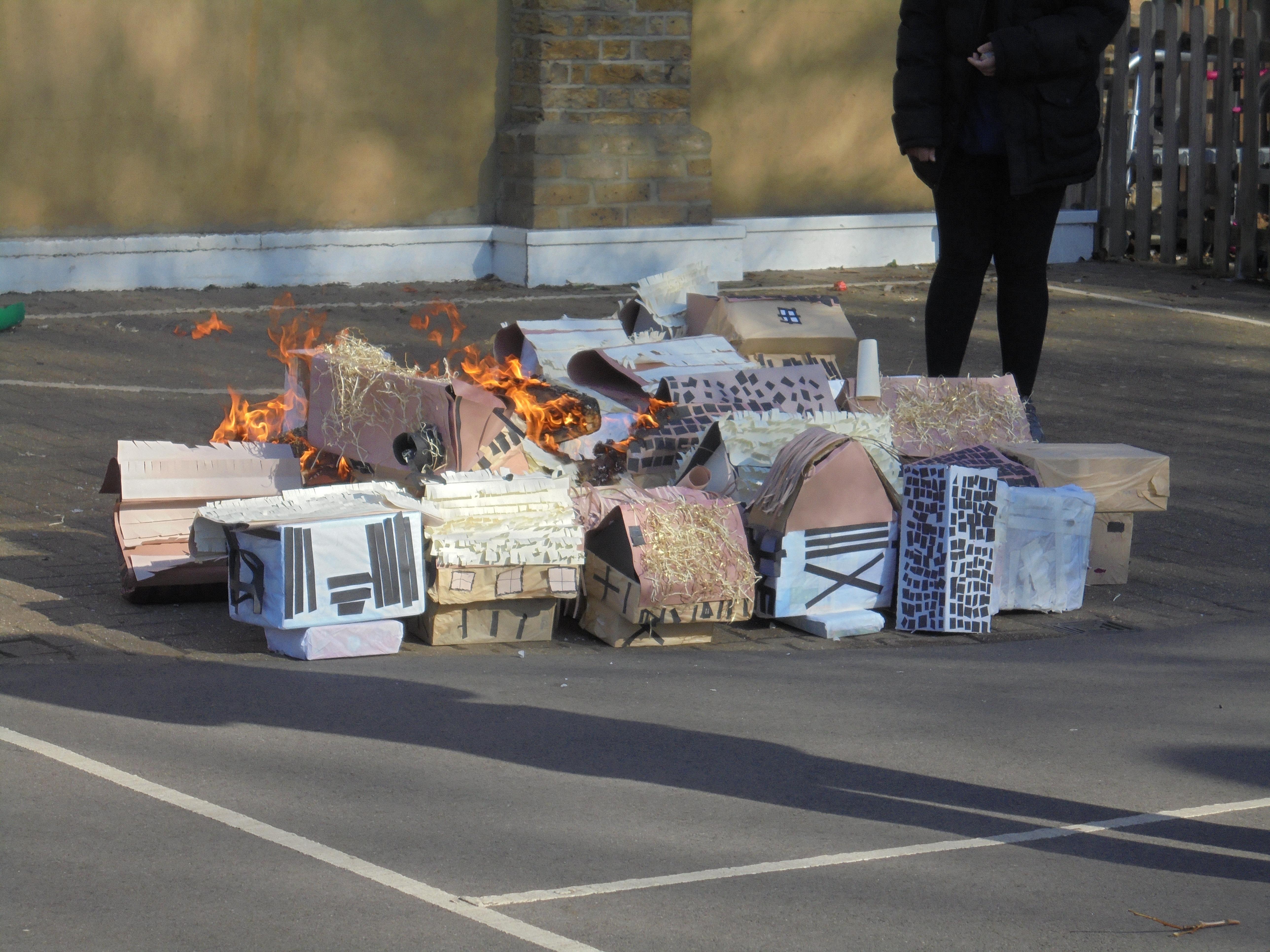 Burning Houses: The Tudor houses we made in our DT lesson were set on fire. This helped us understand how the fire spread quickly from house to house and how the weather conditions made the spreading of the fire quicker.