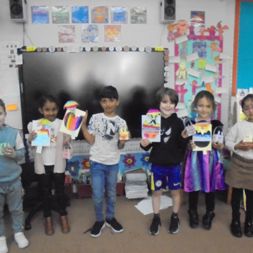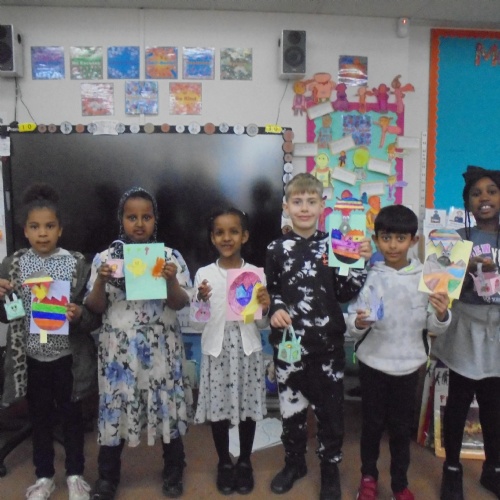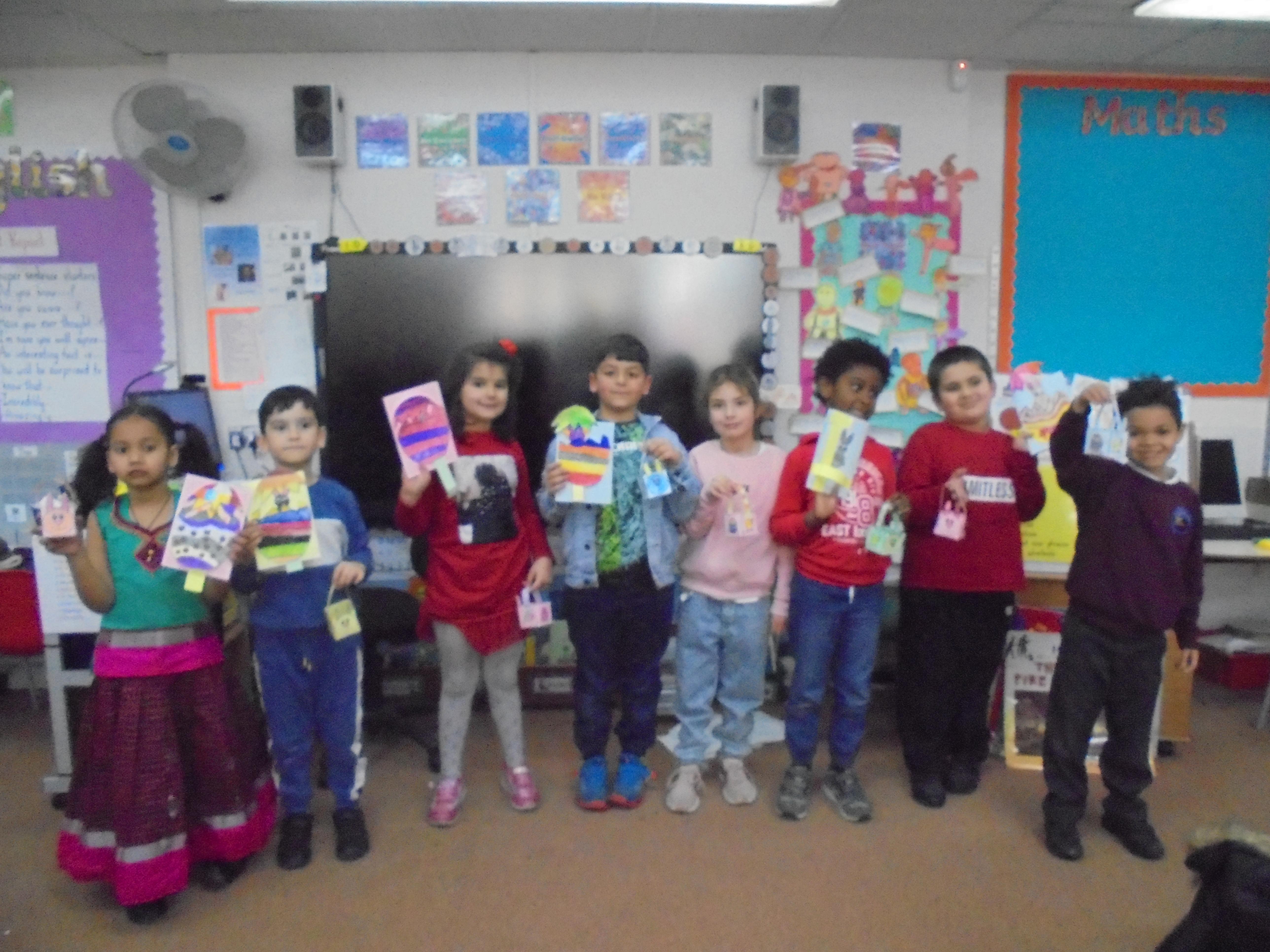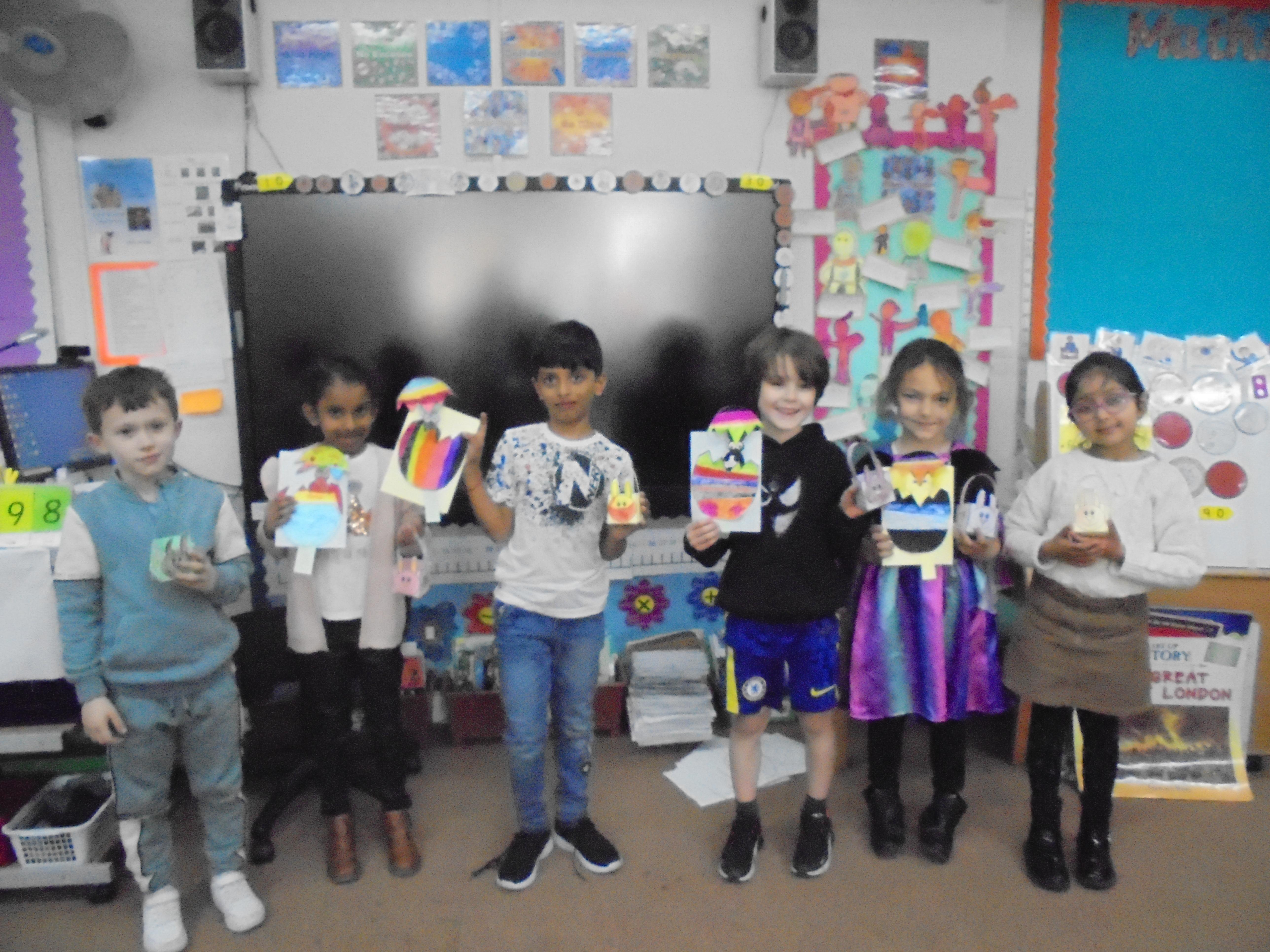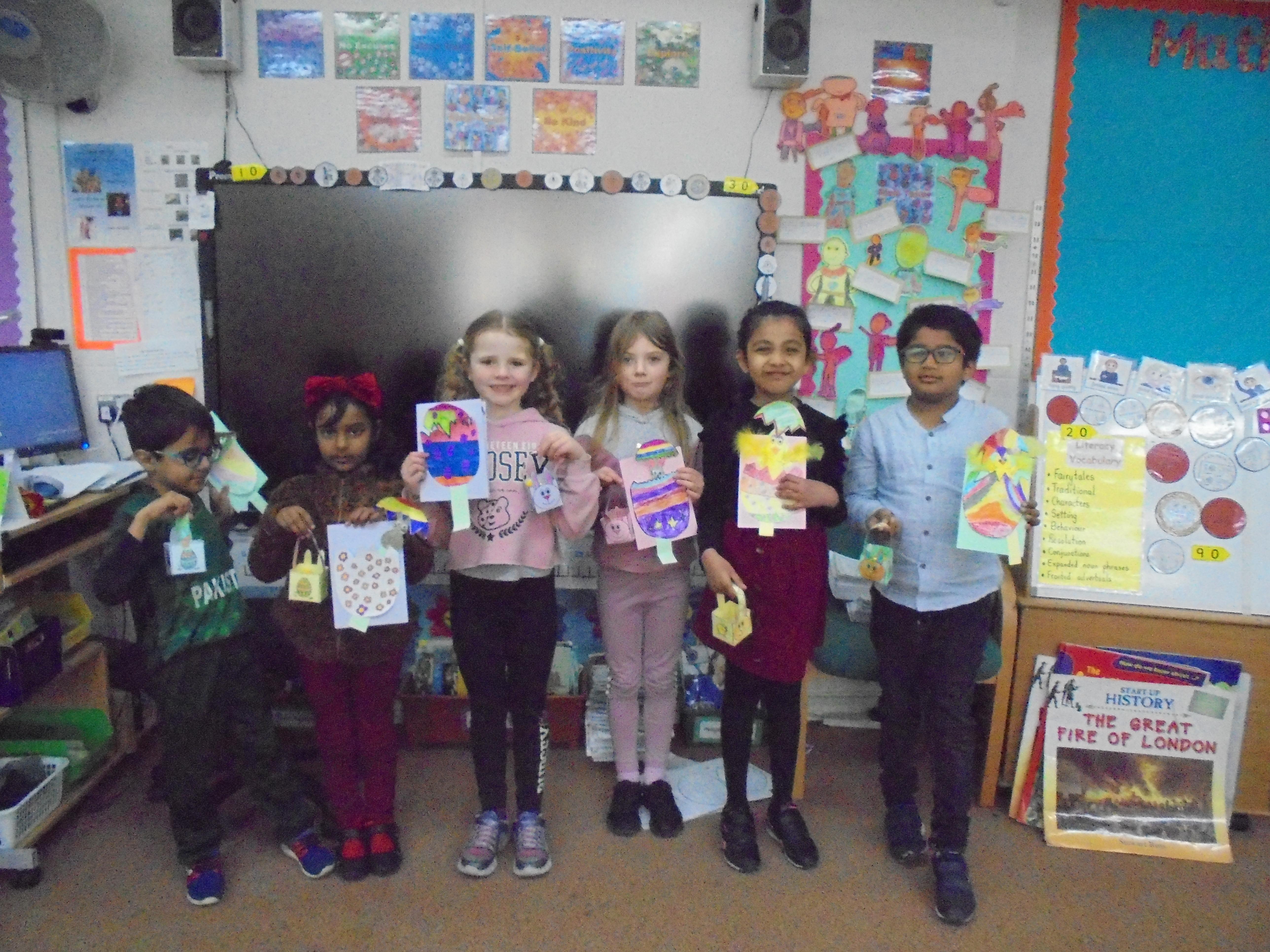 Easter Celebrations: We had a special Easter dinner at school and made pop-up Easter cards. It was lovely to come to school in coloured clothes. We were visited by the Easter bunny that morning too.
