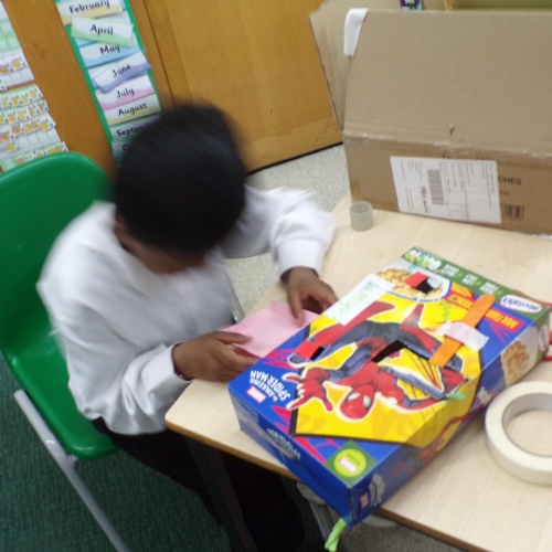 Green class have been learning about sliding mechanisms. They designed an animal enclosure and made a sliding door for the zoo keeper to access that animals.