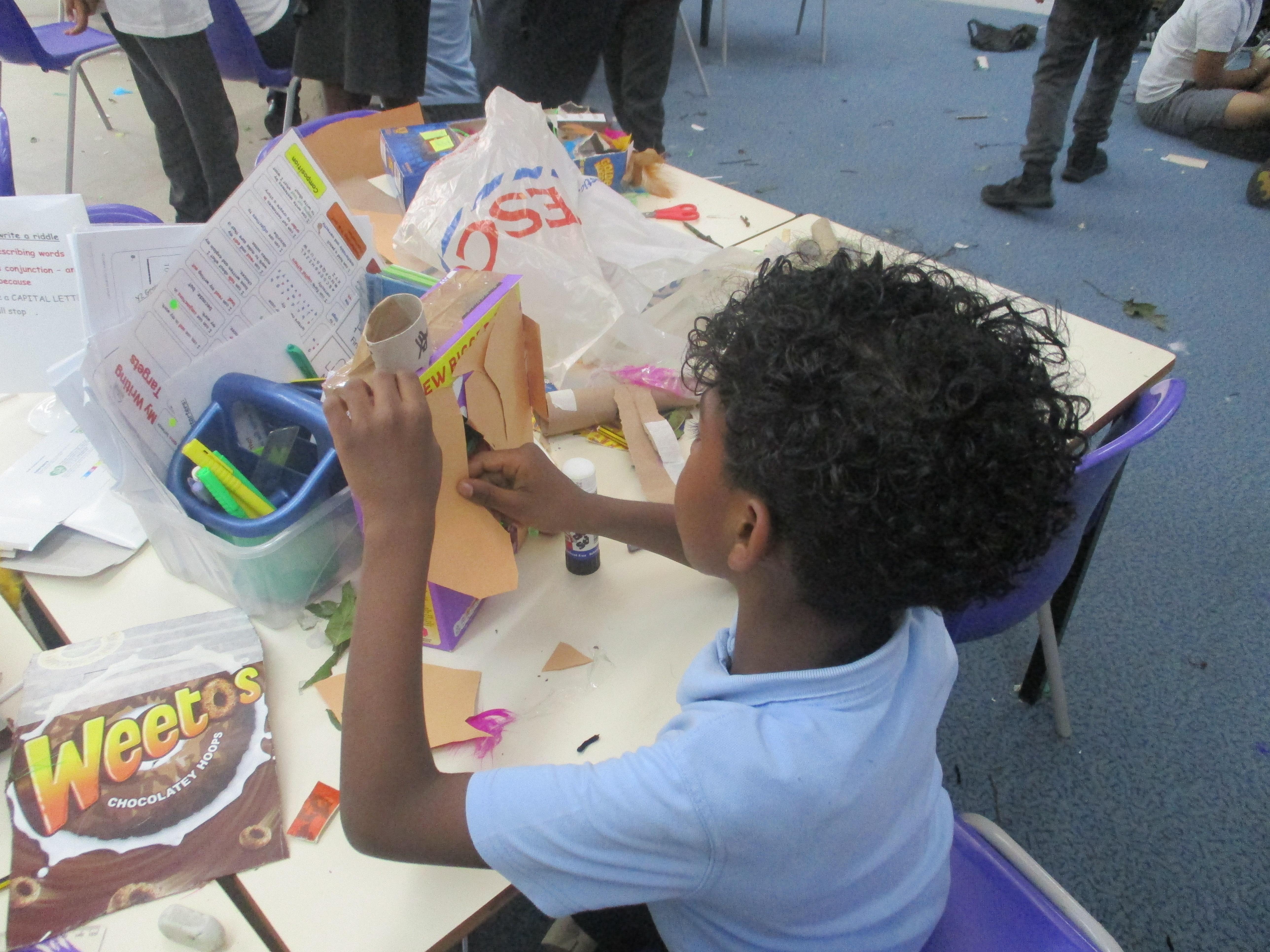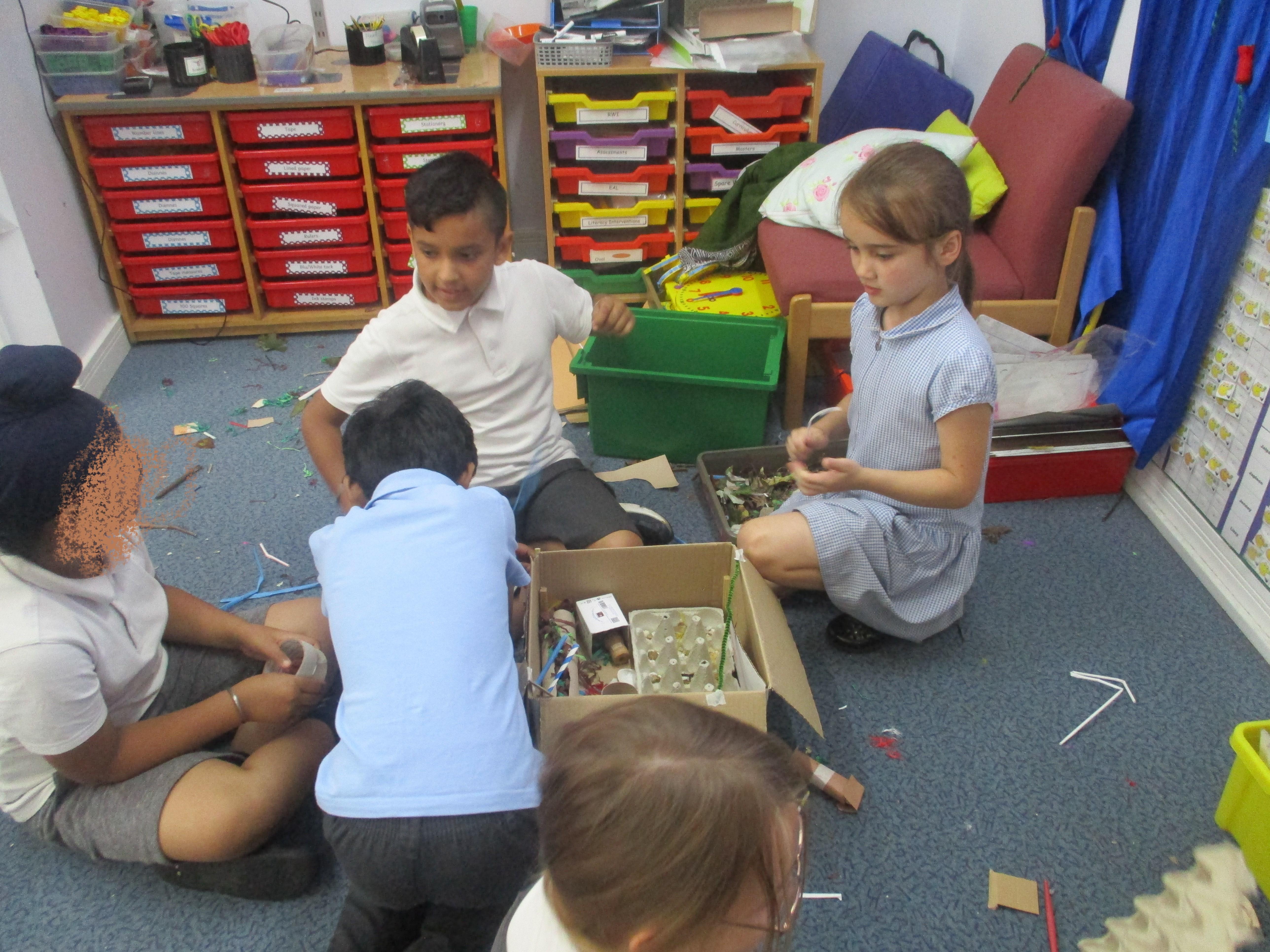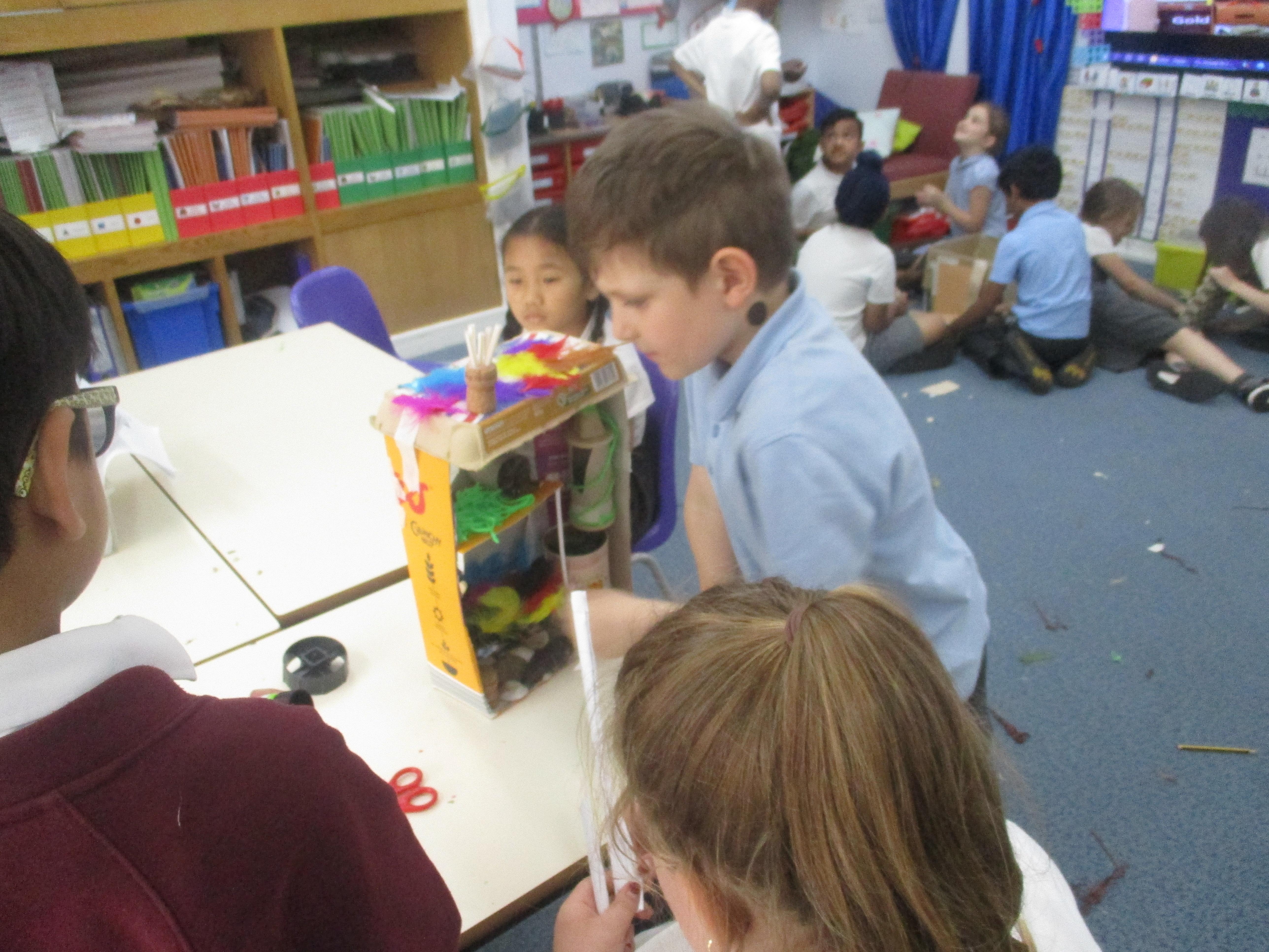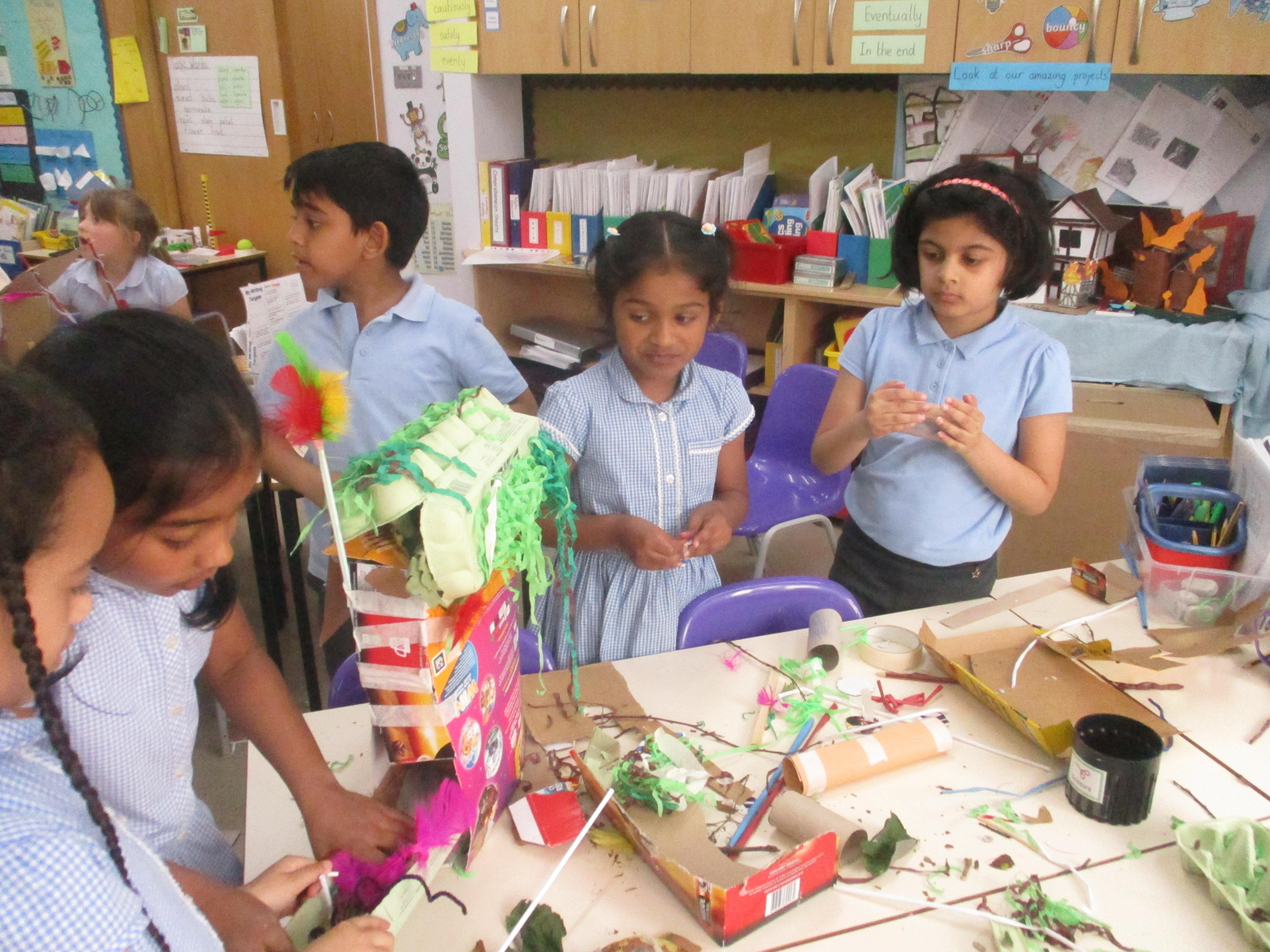 We have been learning about habitats in science. We have been searching the school for different minibeasts and learning about their preferred habitat. Then we made bug hotels in DT.